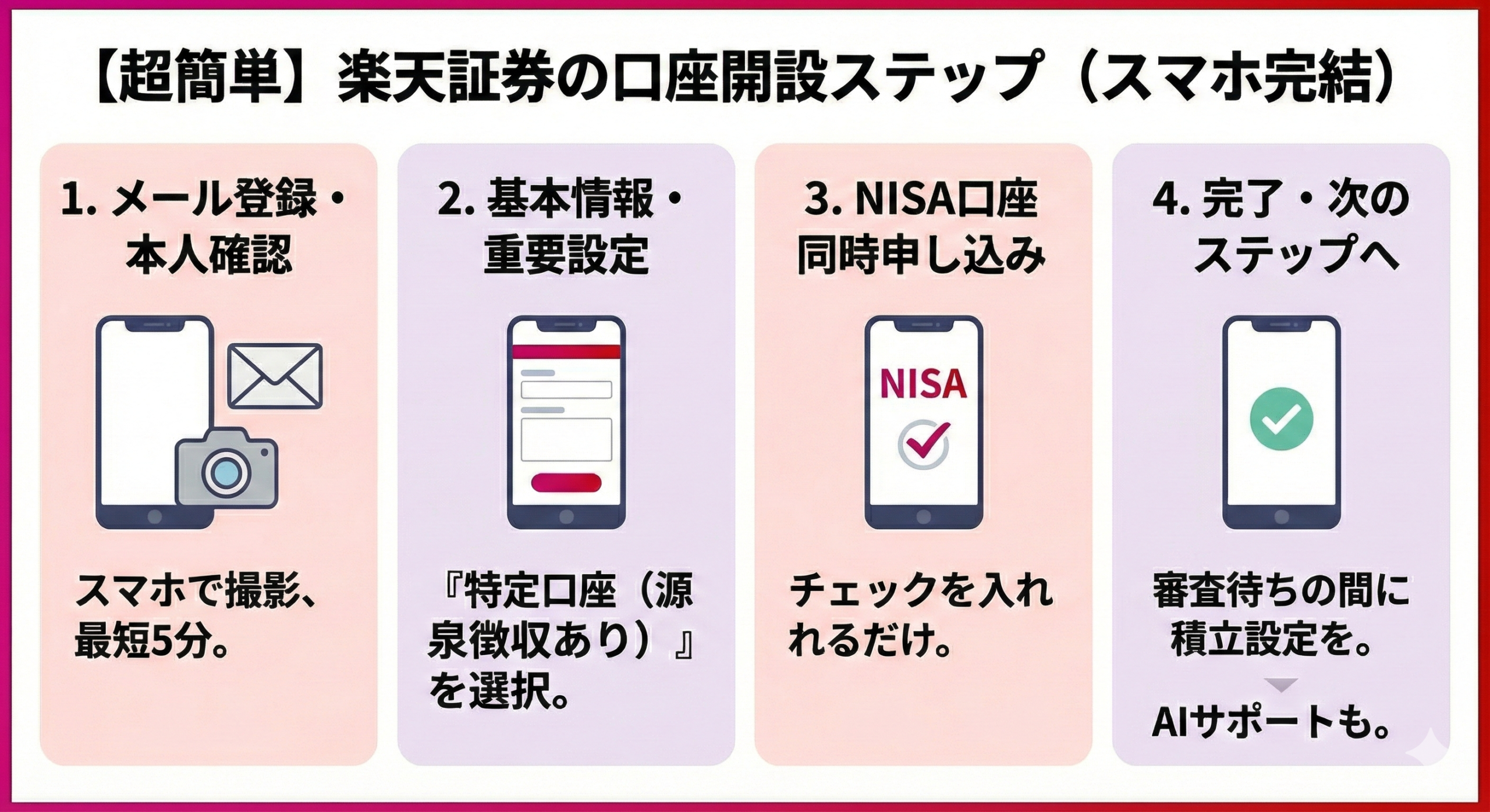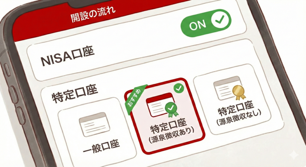 「特定口座(源泉徴収あり)」さえ間違えなければ、税金の心配もありません。物価高に負けない資産を作るための入り口は、もう目の前です。
